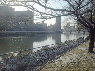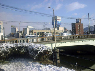 西へ出発。路面が所々凍っているのが怖い。橋の上などに至っては、凍っている部分がほとんど。その状態でも、自転車を降りずに、かつ転ばずに運転できたのは、仙台での経験がものをいったのだろう。