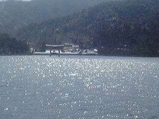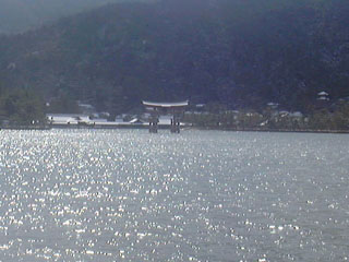 天候をみると、だんだん回復していくようである。宮島へ寄り、時間をつぶそうと考える。宮島航路の乗り場の近くの駐車場に頼んで自転車を置かせてもらい、宮島航路で宮島へ向かう。雪の大鳥居の写真を撮る。すぐの船で折り返し。