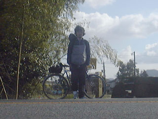 すでに8日間の走行でブレーキがすり減っていたので、開店準備中のバイク屋に押し入り、ペンチを借りてブレーキを増し締めする。