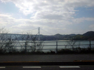 途中の馬島に料金所がある。通行料200円。ちなみに料金所があるのは尾道大橋と来島海峡大橋だけであとは賽銭箱である。領収書をもらったあと、エレベーターで馬島に降りてみる。島に降りたところでなんということは無いのだが、よくもまあこんな巨大な建造物を作ったものだと驚く。来島海峡大橋を降りるともう四国。朝本州にいたのが嘘のようである。
