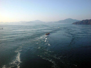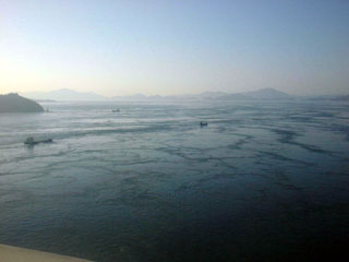 多々羅大橋から水面を見る