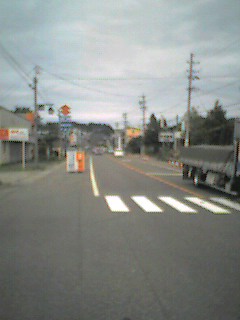 (H19/09/23 09:15:37 長野県長野市豊野) 豊野です。 日が照ってきました。 長野市北部の一部だけ雨が降っていました。 途中の路面には水溜まりもできていたのですが、ここは路面は乾いています。 (写真)