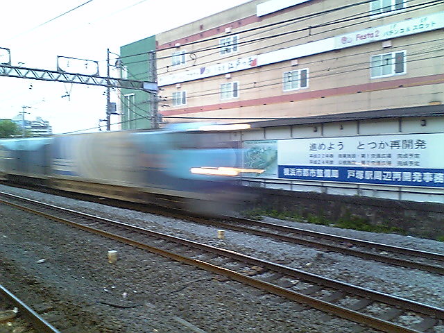 (H22/05/01 04:54:14) 無事自転車の分解も終わり、起点の浜松に向かいます。 写真はぶれましたが「佐川電車」。 (