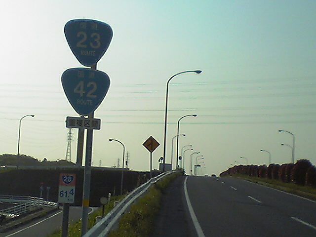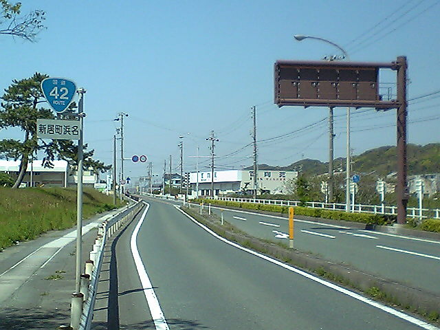 (H22/05/01 10:01:17) 大倉戸ICを過ぎ、42号単独区間に入りました。 初めての42号のおにぎり(標識)です。 (