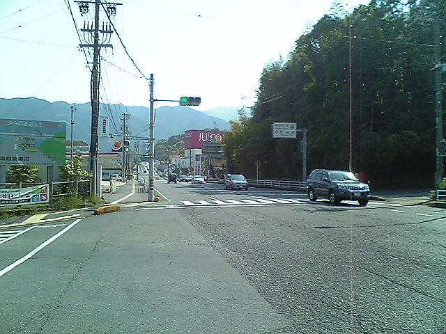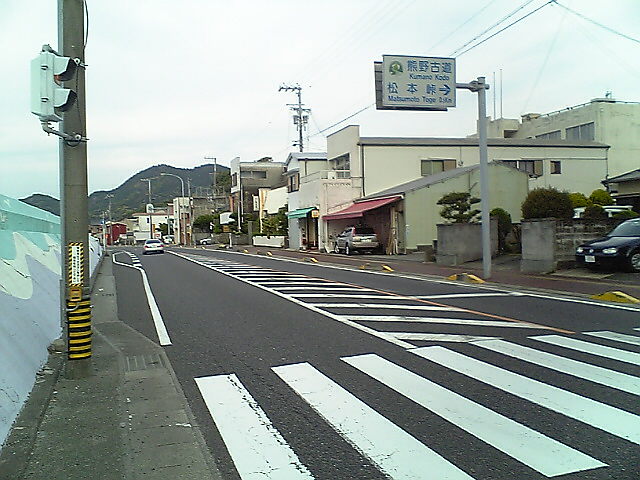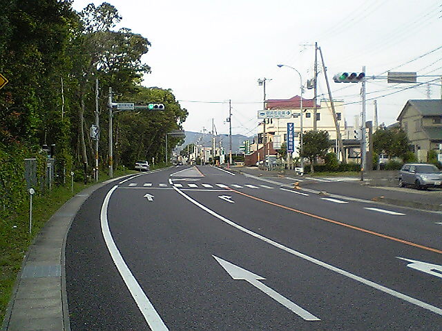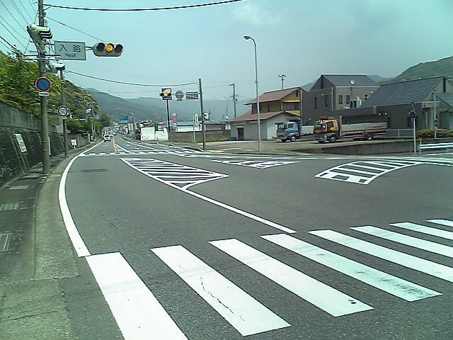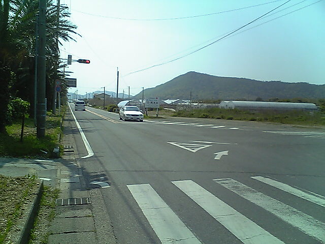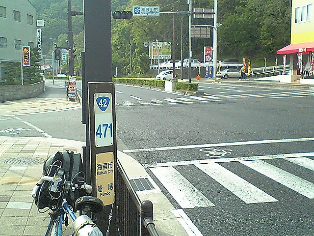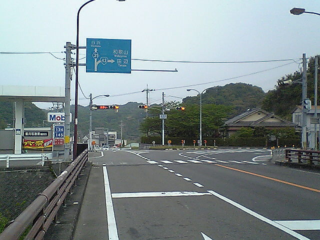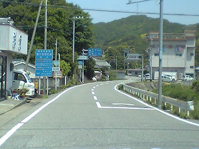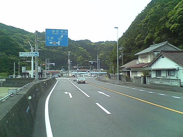(H22/05/04 06:42:50 和歌山県白浜町) ここを直進すると白浜町の中心部です。かなり離れています。 白浜温泉ではなく椿温泉にこだわったのは、42号から外れるため、距離のロスが多くなるからです。 それに高校の部活の合宿も白浜だったし、いまさらって感じですし。 (