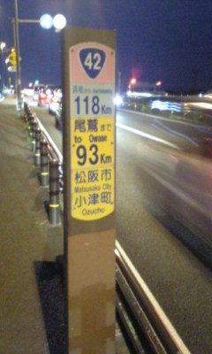 (H22/05/01 19:10:55) 今まで42号にはキロポストは無かったのですが、旧42号区間に入り、早速キロポストが現れました。 (旧42号は和歌山市→津市) (