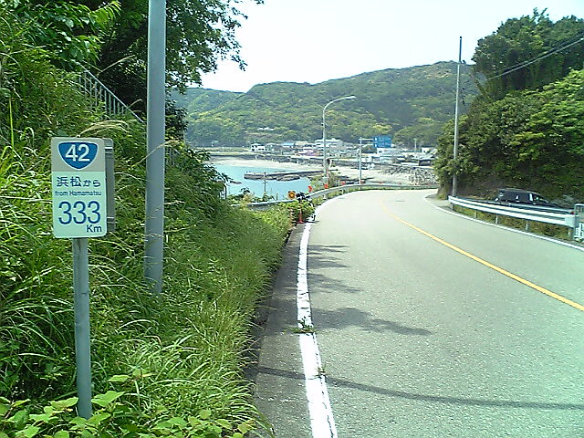 (H22/05/03 10:17:07) 浜松から300km地点です。 海岸線を走ります。 まだ南下しています。 (