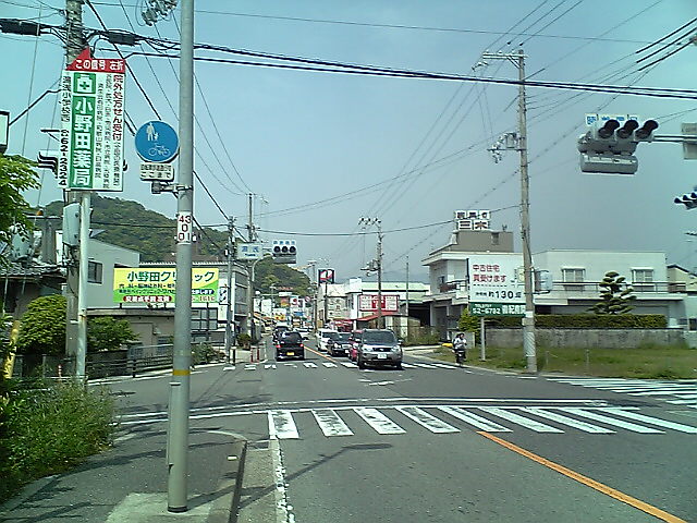(H22/05/03 07:28:13 三重県紀宝町) 紀宝町中心部です。 県境まであと少し。 (