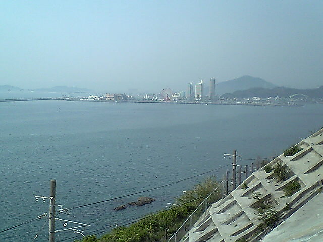 (H22/05/01 15:44:27) 寝ている間に鳥羽の町が見えてきました。 鳥羽は小学校の修学旅行先でした。 (