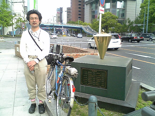 (H22/05/04 16:42:06 和歌山県和歌山市) 和歌山市道路元標に到着。 適当な置場が無いのでセルフタイマーが出来ないのが残念。 (