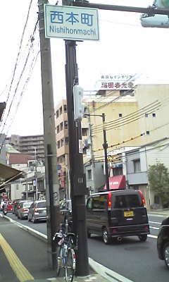 (H24/04/30 12:50:40 大阪府池田市) 国道477号終点、西本町交差点に着きました。 477号終点であることを示すものは何もありません。 (