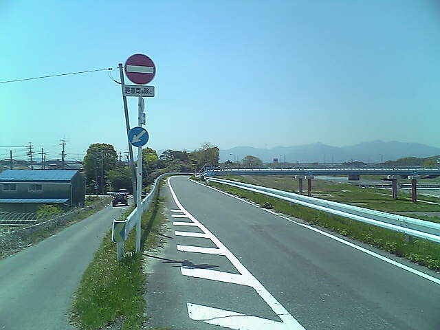 (H24/04/29 09:22:54) 野洲川を渡ってすぐ、路肩のこんなところに曲がれとの指示が…。 見落とすところでした。 (