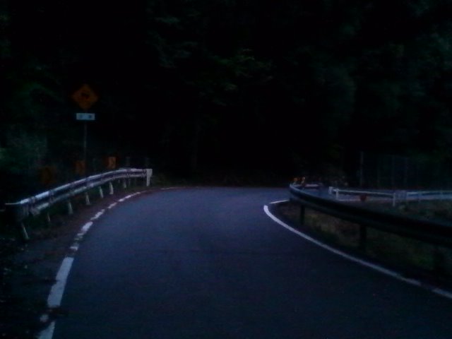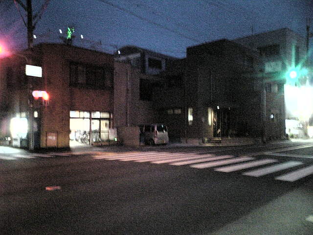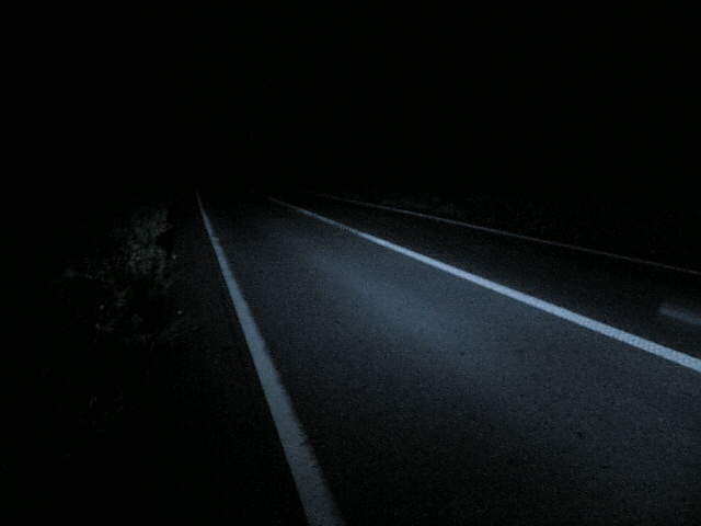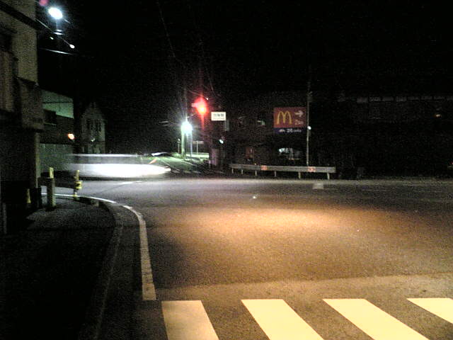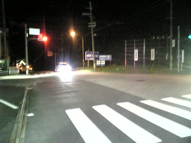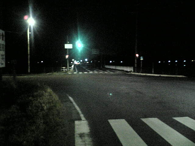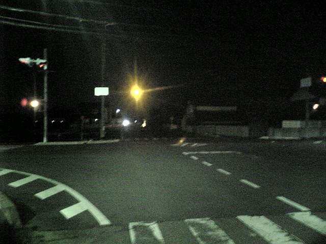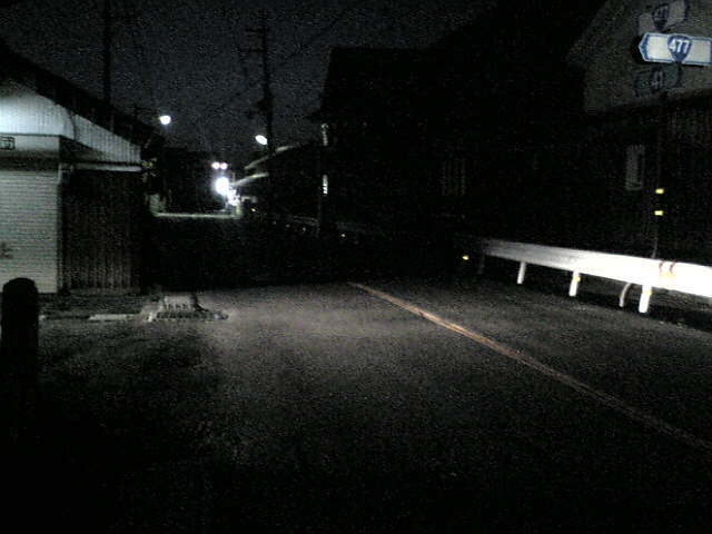 (H24/04/28 19:46:59 滋賀県東近江市) ここ左折です。 カエルと虫の声の中を走っています。 怖いのはイヌ。暗闇に光る目が見えると背筋が凍り付きます。 (