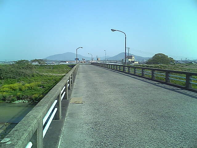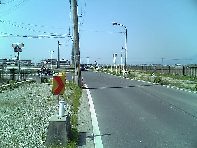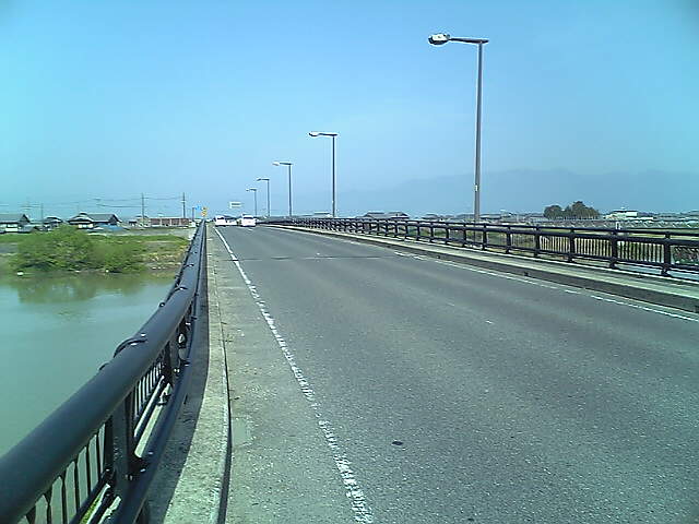 (H24/04/29 08:26:31) 日野川を渡ります。これが国道。渡ったら左折です。 (