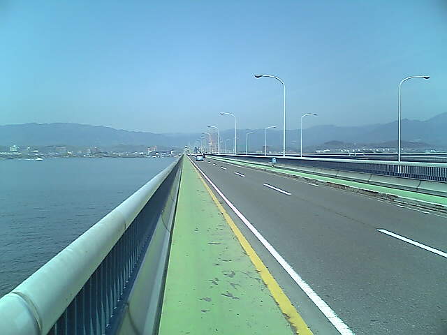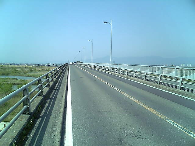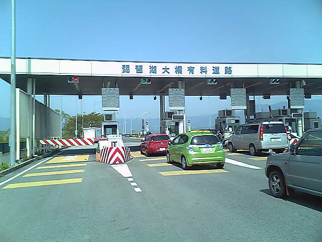 (H24/04/29 10:07:49) 琵琶湖大橋、自転車はタダです。 守山市から大津市の区間が1番国道らしいですね。 (
