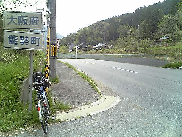 (H24/04/30 11:02:01) 本日三度目の府県境。大阪府豊能町(西地区)に入ります。 妙見口駅〜黒川駅の乗り換え通路(笑)でもあるので歩行者が多いです。 府県境を挟んで1.4kmの乗り換えは酷い感じもしますが、利用者は基本的に山歩きの人なので問題無いのでしょう。 ここからは能勢電鉄妙見線と並走です。 (
