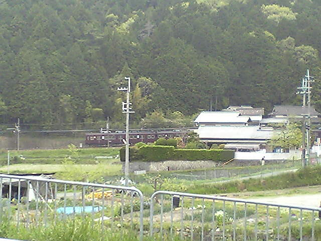 (H24/04/30 11:12:20) 電車だ! 私が乗った頃は「ミルクセーキ色」でしたが、今ではマルーン一色になりました…JR西日本かい!! (