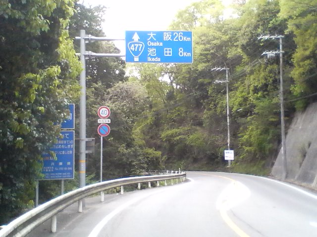(H24/04/30 09:04:20 京都府亀岡市) 372号と別れて477号単独で大阪府に向かいます。 さっき、「農耕車に注意」が「暴走車に注意」に見えた…どうかしてる。 (
