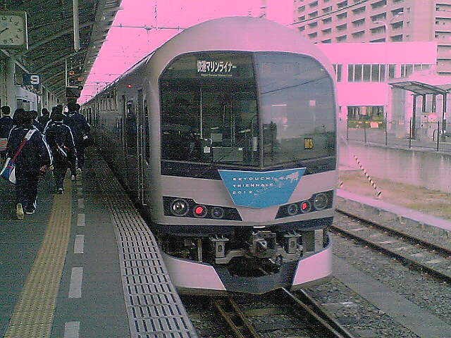 (H25/04/27 07:45:52) 高松で荷物の大半をコインロッカーに突っ込んだあと、「マリン・パノラマ」で岡山へ。 上り列車で「マリン・パノラマ」乗ってもつまらないことに気付いた…。 (