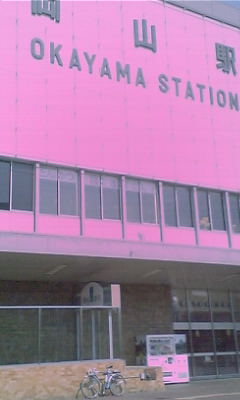 (H25/04/27 09:26:21) 自転車にとっては大学の卒業旅行、1999年以来の岡山駅です。 自転車を組み立てて出発です。 (