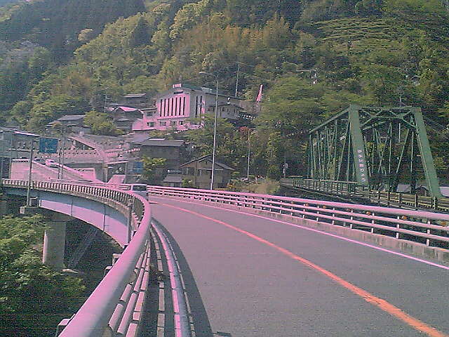 (H25/04/28 08:44:32 徳島県三好市池田町) 吉野川を渡り、国道192号と別れます。 (地名表示がずれていますがご了承ください。) (