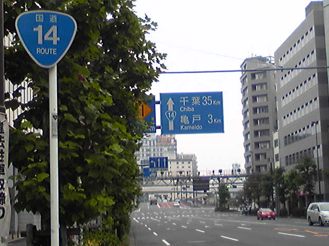 (H26/11/02 12:07:48 東京都江戸川区)  まっすぐ行っても14号、左折しても14号。 (写真