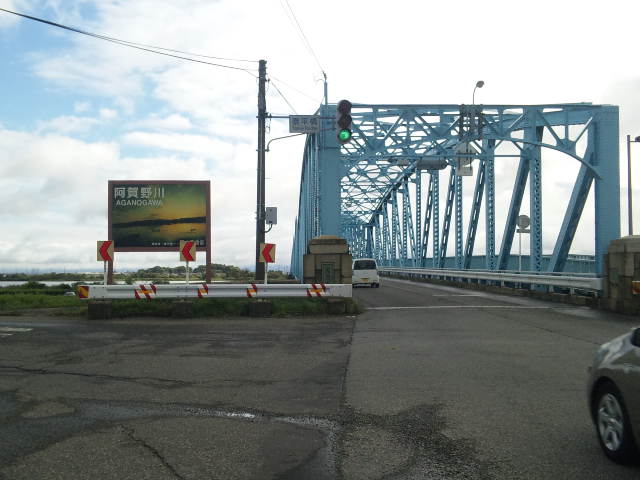 (H27/09/21 14:57:54)  秋田市内で届け物のために1時間ほどロス。 今から雄物川を渡り、市街地に入ります。 (写真