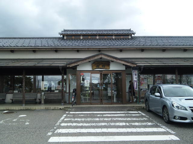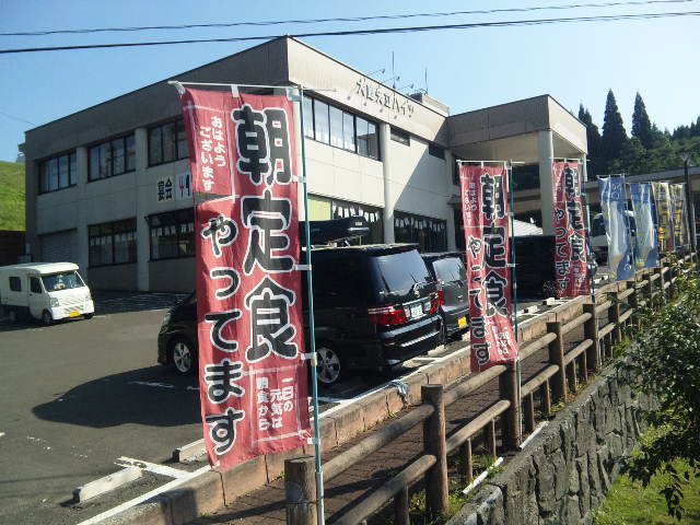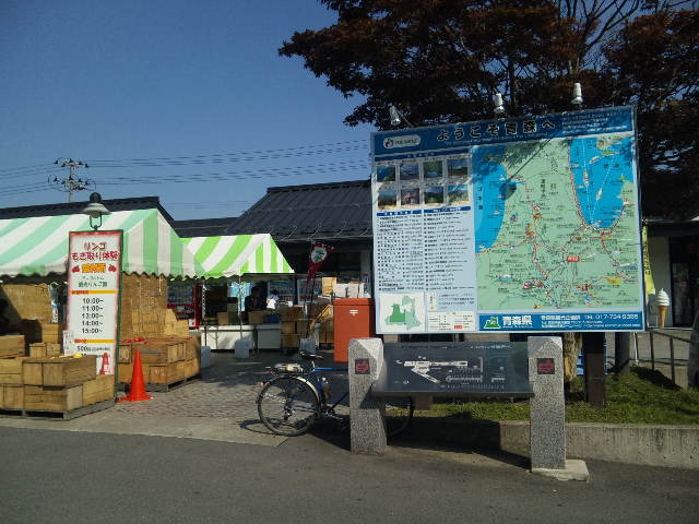 (H27/09/23 09:07:24)  「朝定食やってます」と旗を立てておいて、入ったらやってませんという、不快感極まりない道の駅。 ちなみに国道7号の道の駅はここが最後。青森県内にはありません。 (写真