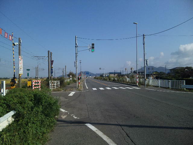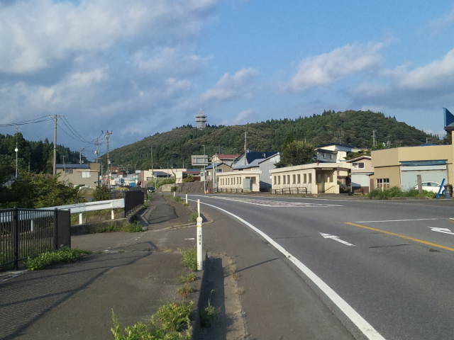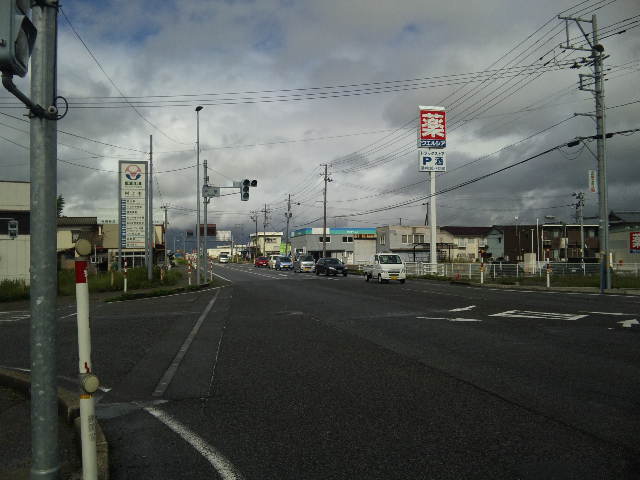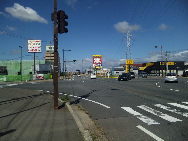 (H27/09/22 11:53:20)  新潟市から333km地点。 能代市の中心部を抜け、東能代駅の近くです。 今日はノロノロ走っているので、朝から45km走ったなんて信じられない気分です。 (写真