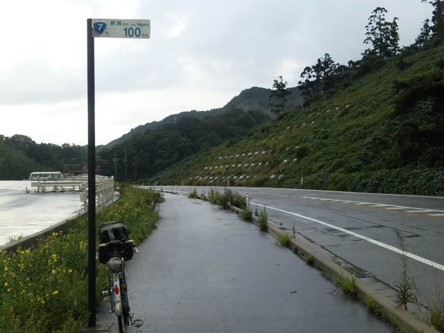 (H27/09/20 07:04:41)  新潟市から100km地点です。 まだ新潟県内、ここ50kmはずっと村上市です。 (写真