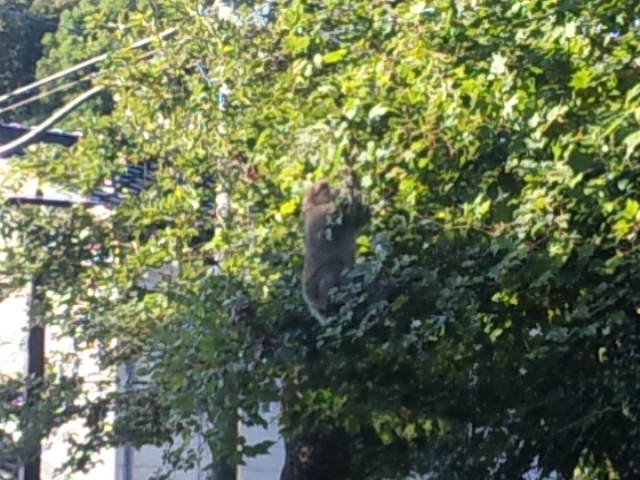 (H27/09/21 07:00:13)  サルって電線にとまるんですね。初めて見ました。 (写真