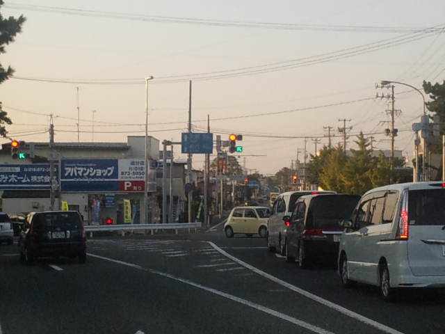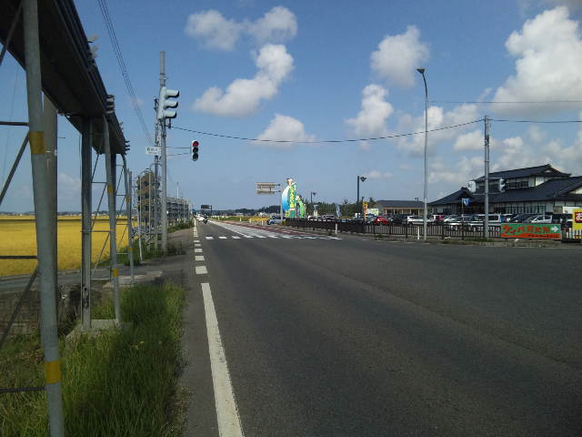 (H27/09/20 12:00:39 山形県三川町)  三川町に入りました。 鶴岡市は50kmに僅かに満たず。 相変わらず渋滞しています。 (写真