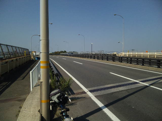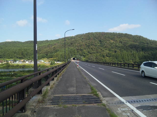(H27/09/22 13:35:55)  米代川を渡ります。 二ツ井バイパス、将来自動車専用道になる可能性がありますので、自転車で走るなら今です。 (写真