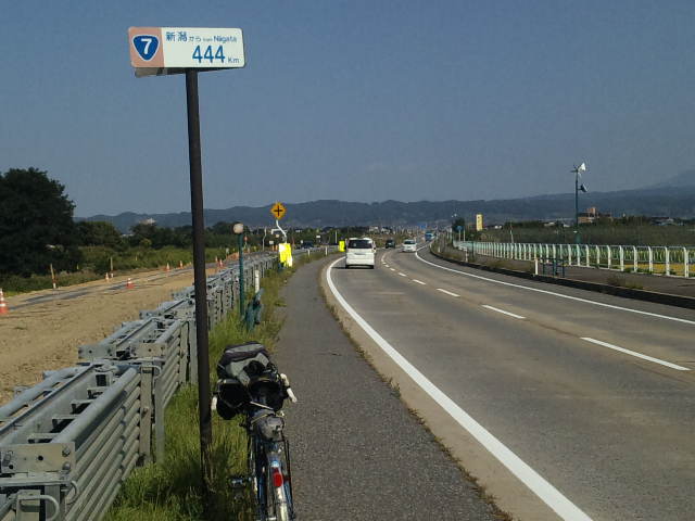(H27/09/22 08:47:07)  新潟市から300km地点。 4日目にしてようやくたどり着きましたが、かつては1日で走った距離です。 (写真