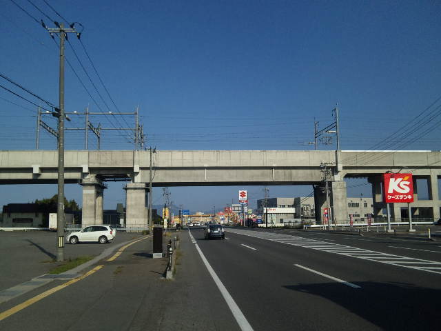 (H27/09/23 15:23:31)  北海道新幹線の高架をくぐります。 (写真