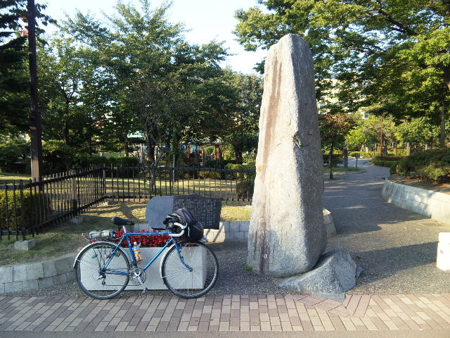 (H27/09/19 08:16:53 新潟県新潟市)  新潟市道路元標。 国道7号起点です。 ここから青森を目指します。 (写真
