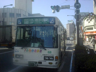 小岩駅北口からは国道14号市川橋を経由して無事江戸川を渡れる。バスの行き先は市川駅。つくばへのルートからはかなり離れている印象があるが、新葛飾橋にバスが無い以上、仕方がない。運行会社は京成タウンバスという会社らしい。