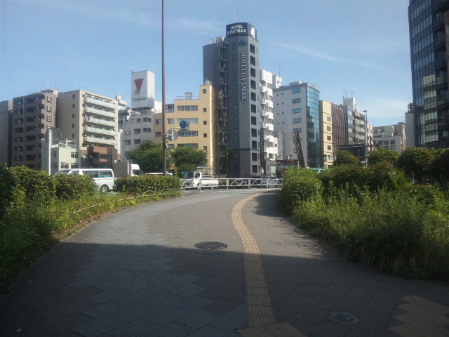 (R05/05/27 09:08:39) 南千住駅前歩道橋を渡ります。 (