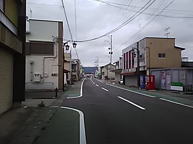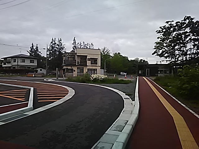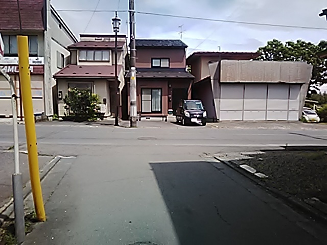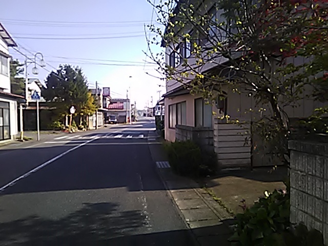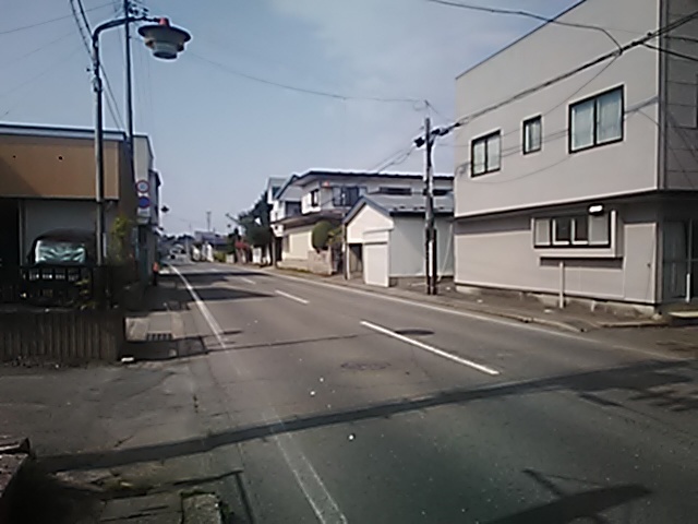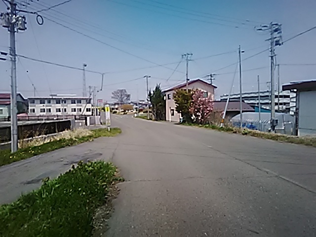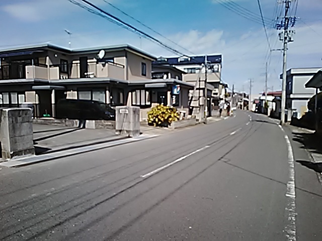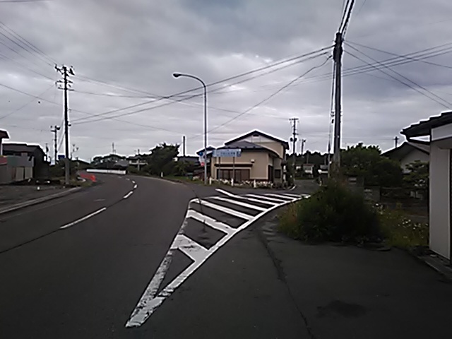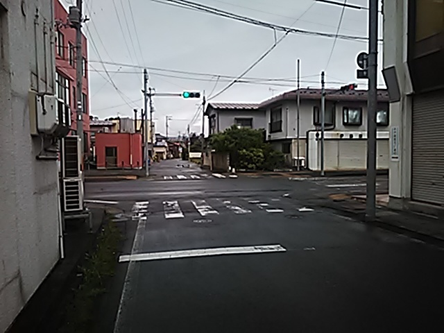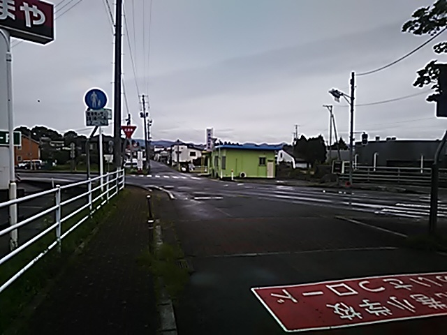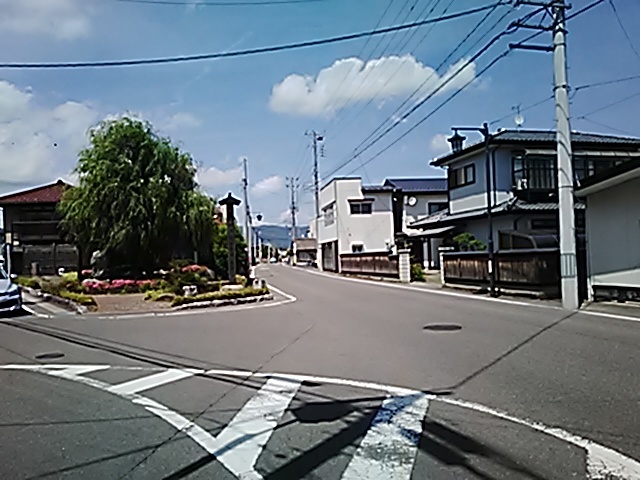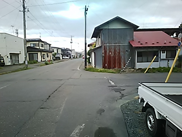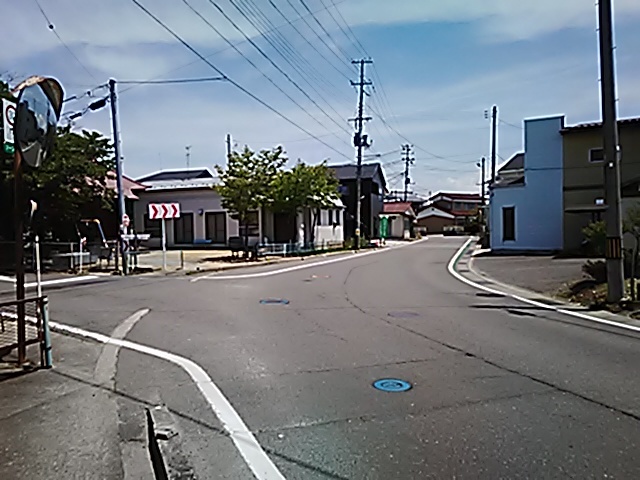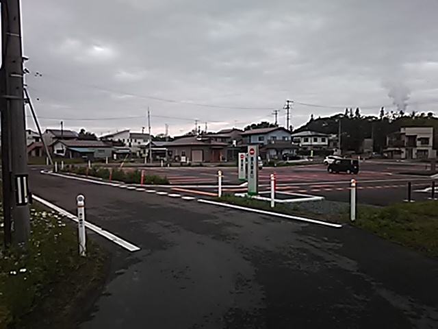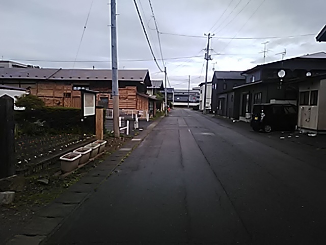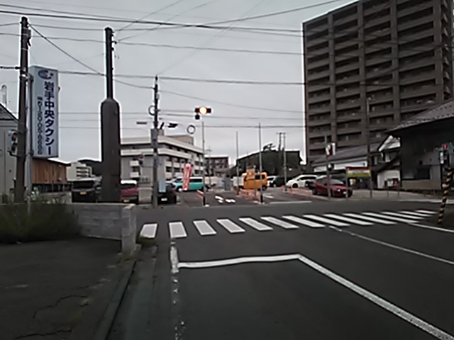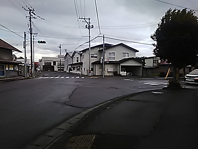 (R07/06/01 10:46:02 石鳥谷(陸中)) このあたりが石鳥谷宿中心部です。 石鳥谷では先週、クマが出たとのことで、ラジオを鳴らしながらびくびくして歩きましたが、見てのとおり、クマなんて居そうにない市街地です。 日が出てきました。 (
