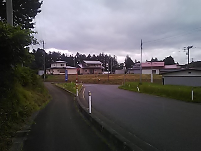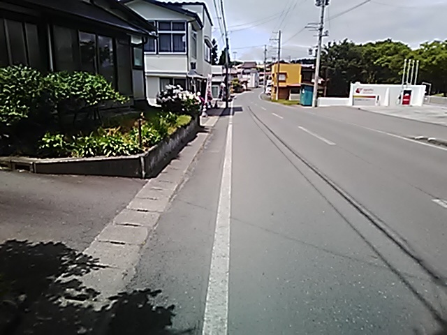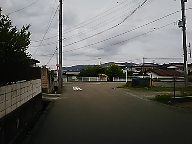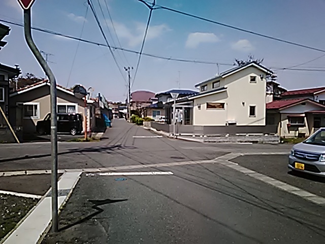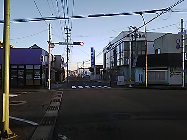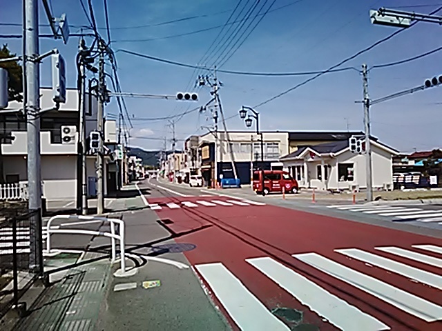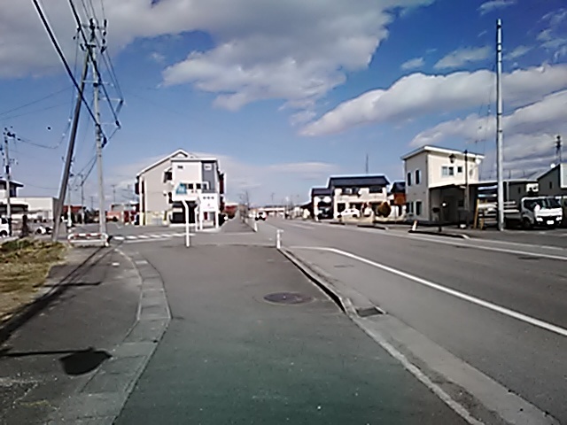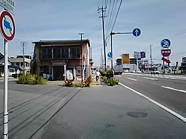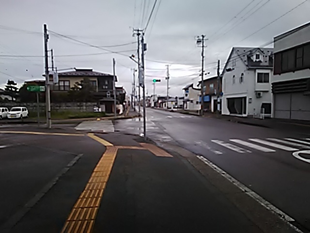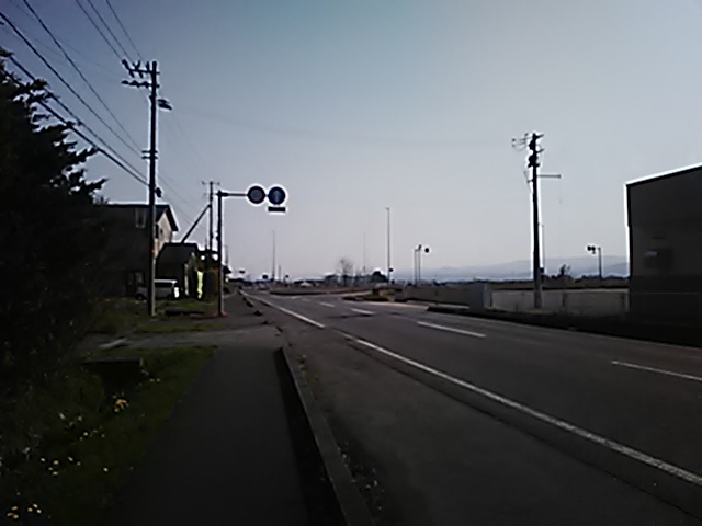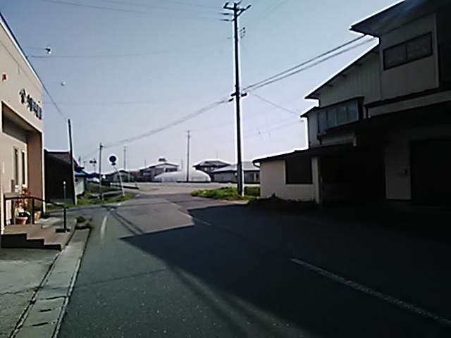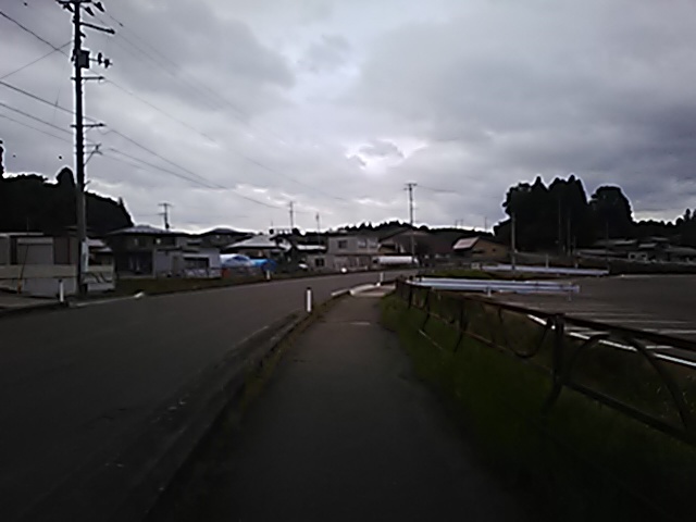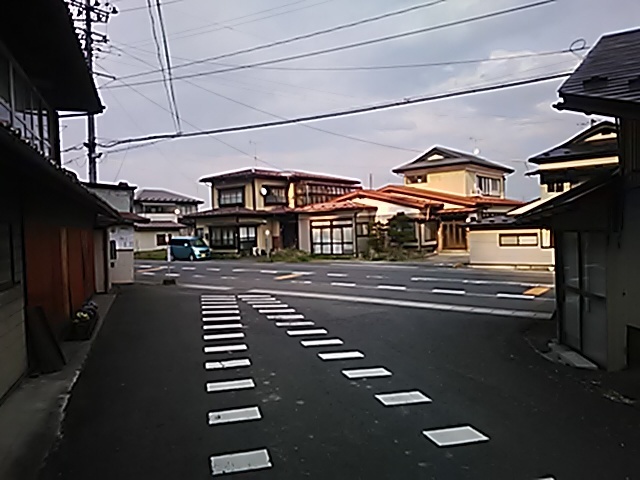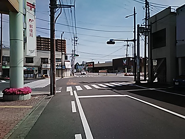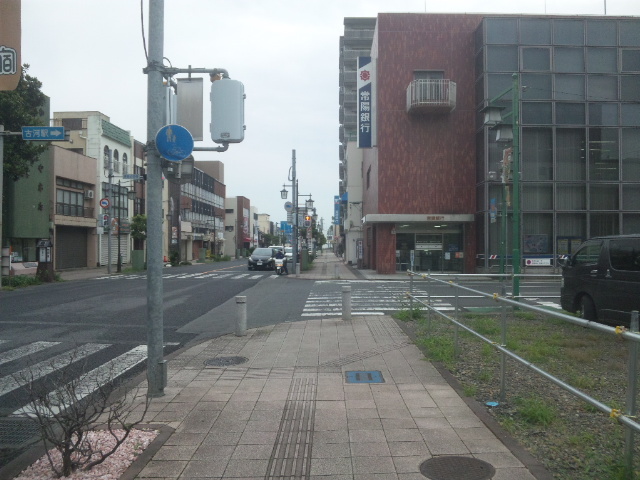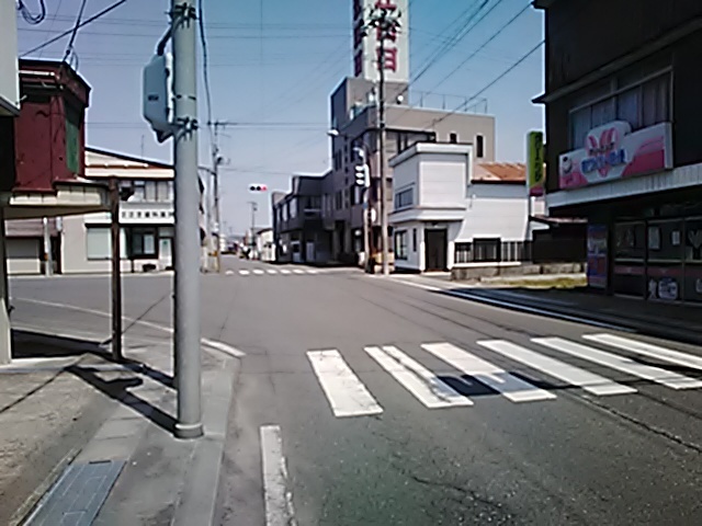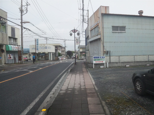 (R07/06/01 10:46:02 石鳥谷(陸中)) このあたりが石鳥谷宿中心部です。 石鳥谷では先週、クマが出たとのことで、ラジオを鳴らしながらびくびくして歩きましたが、見てのとおり、クマなんて居そうにない市街地です。 日が出てきました。 (