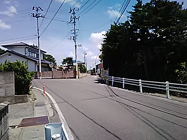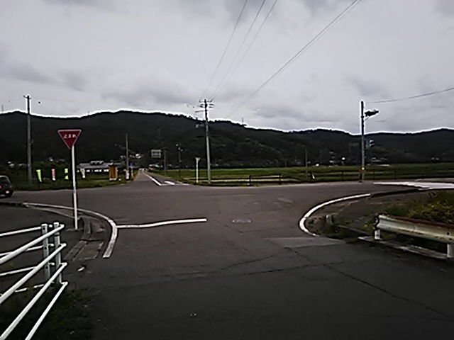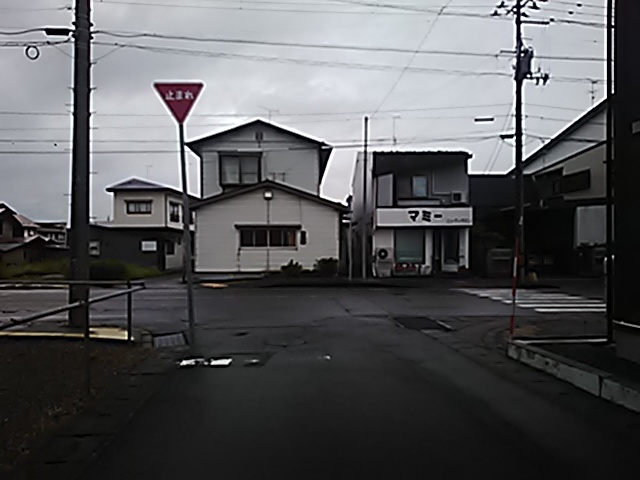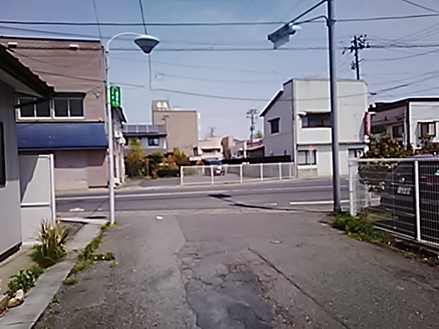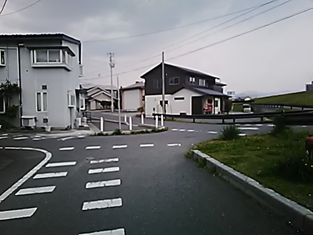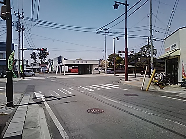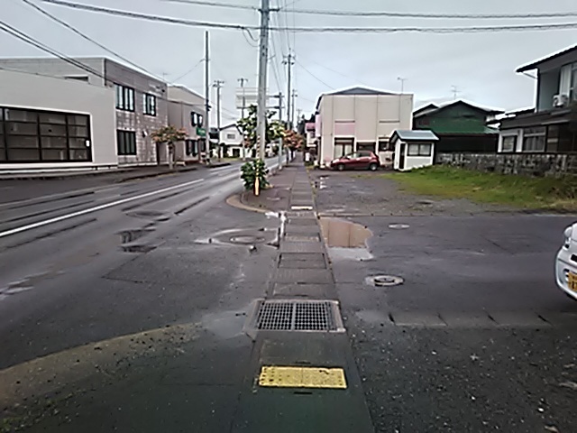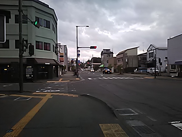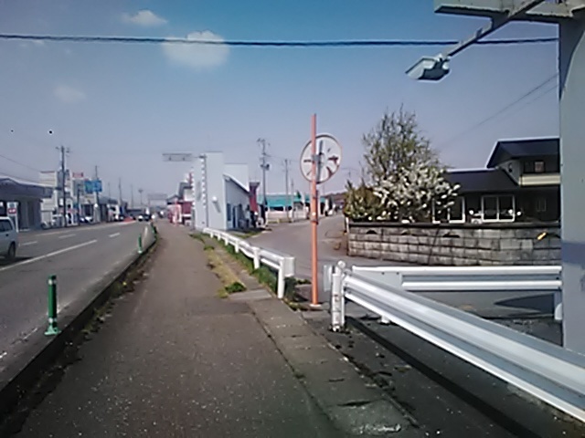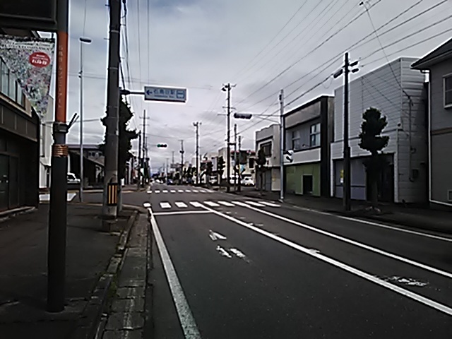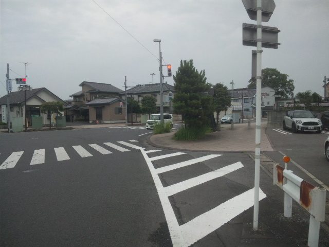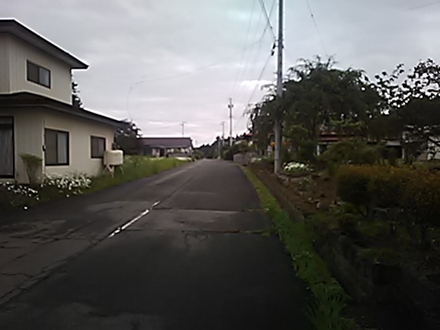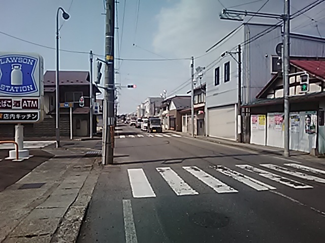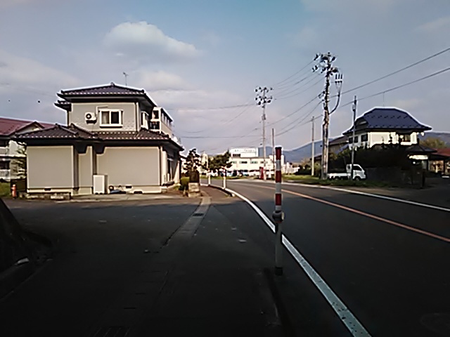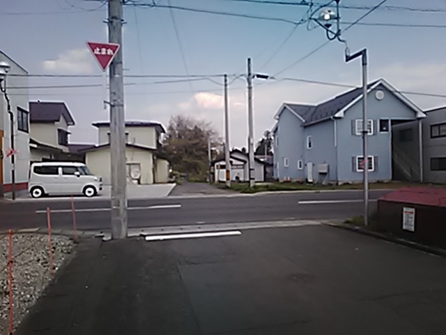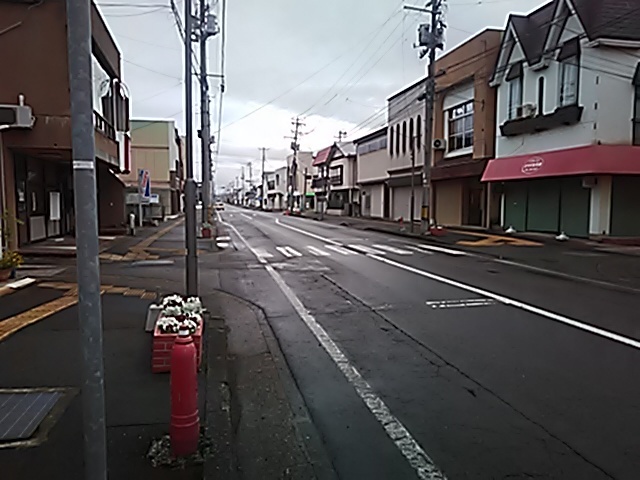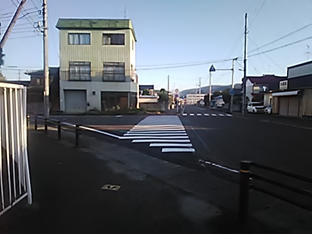 (R07/06/01 10:46:02 石鳥谷(陸中)) このあたりが石鳥谷宿中心部です。 石鳥谷では先週、クマが出たとのことで、ラジオを鳴らしながらびくびくして歩きましたが、見てのとおり、クマなんて居そうにない市街地です。 日が出てきました。 (
