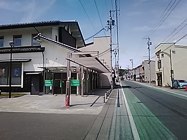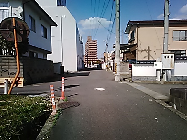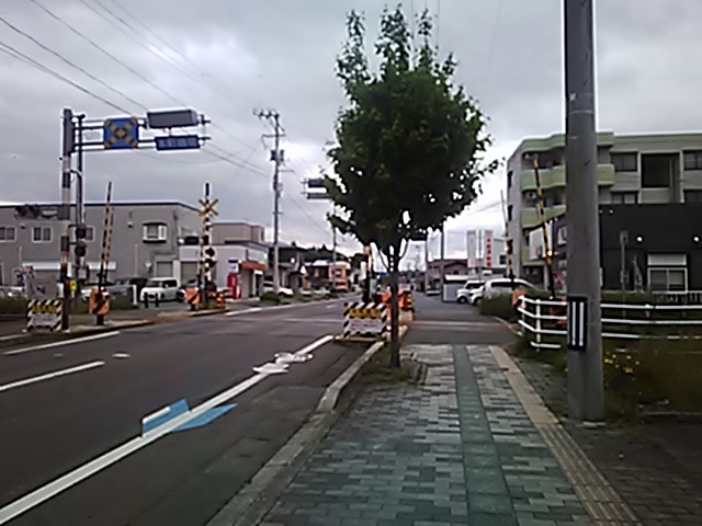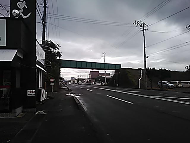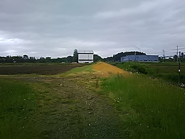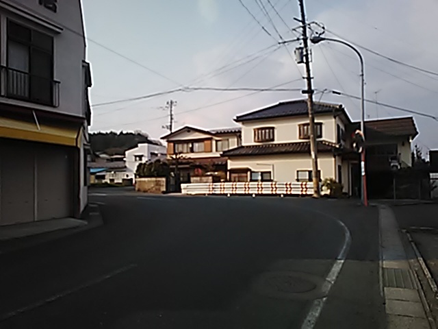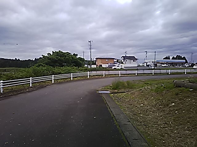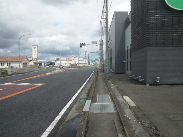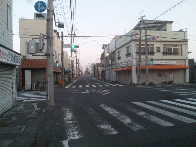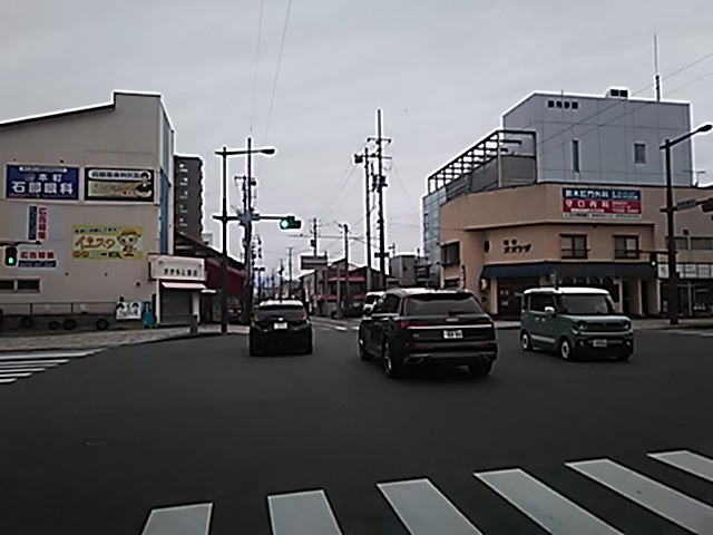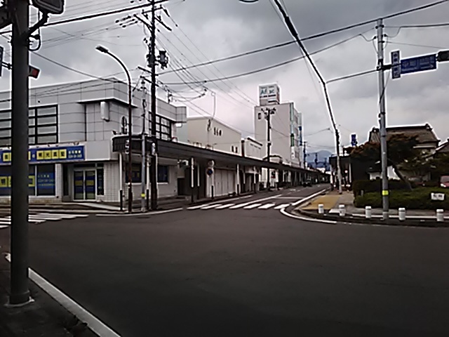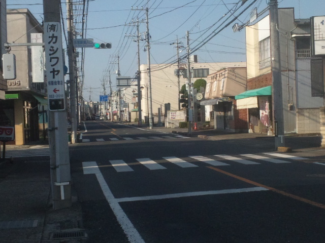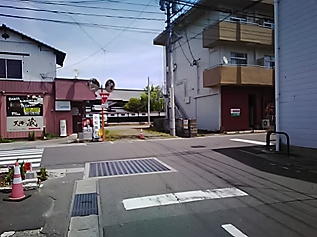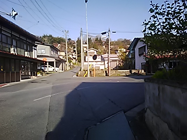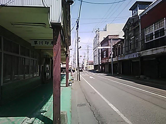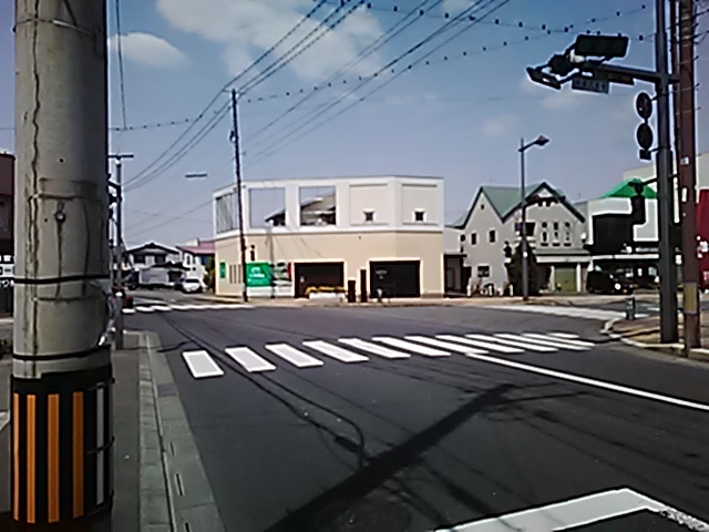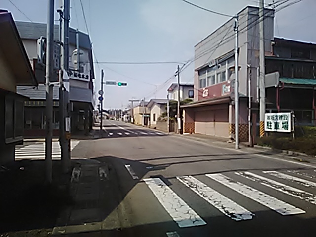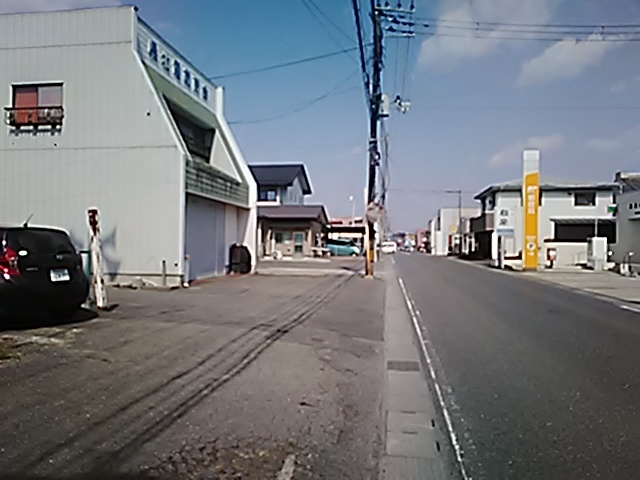 (R07/06/01 10:46:02 石鳥谷(陸中)) このあたりが石鳥谷宿中心部です。 石鳥谷では先週、クマが出たとのことで、ラジオを鳴らしながらびくびくして歩きましたが、見てのとおり、クマなんて居そうにない市街地です。 日が出てきました。 (