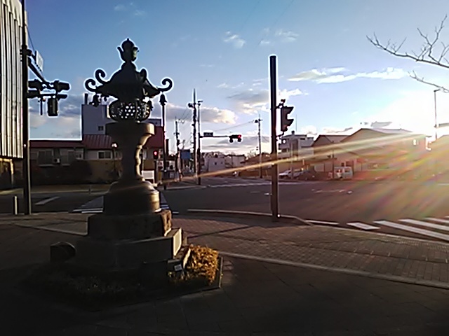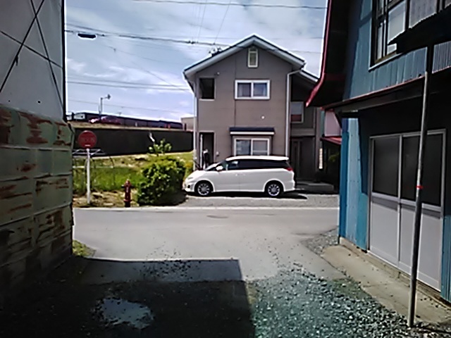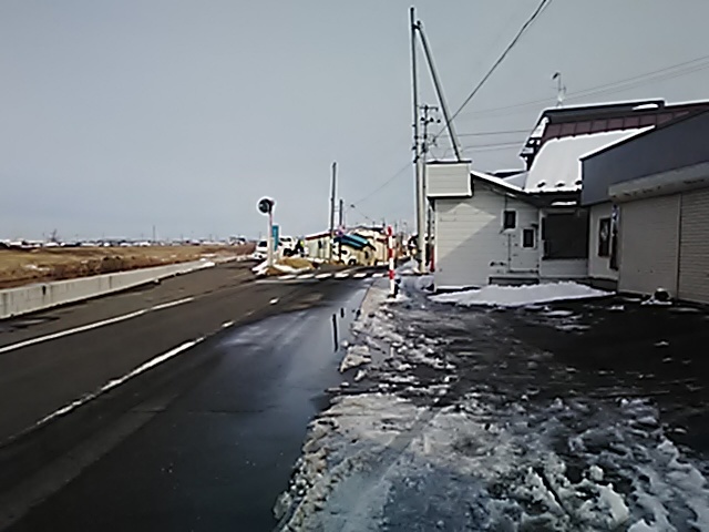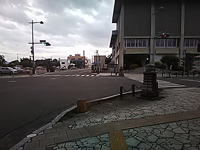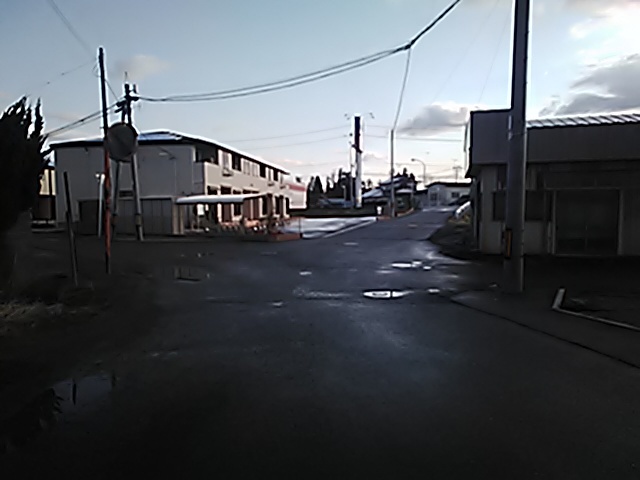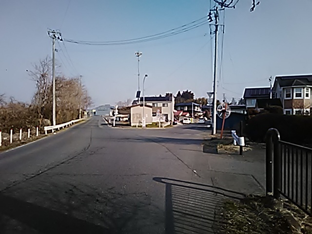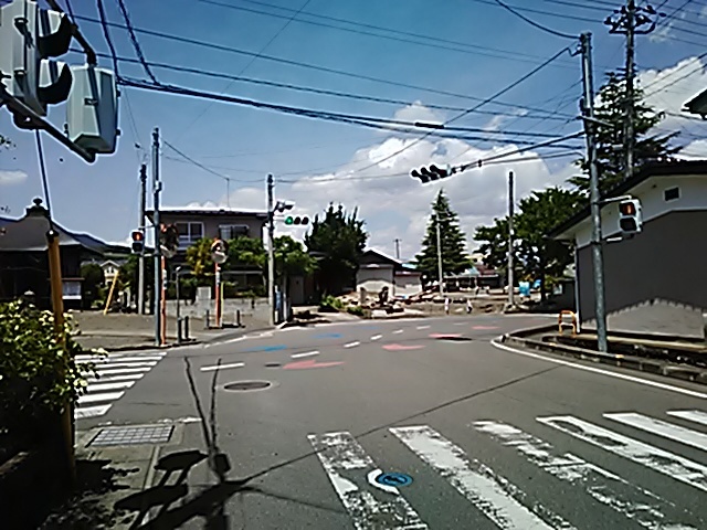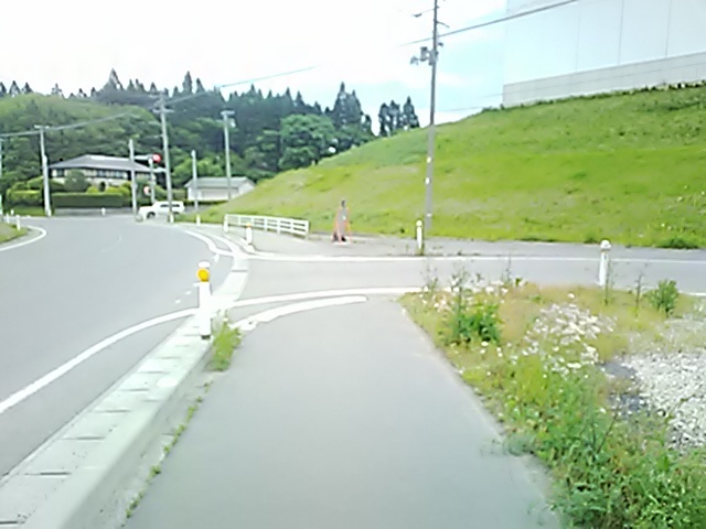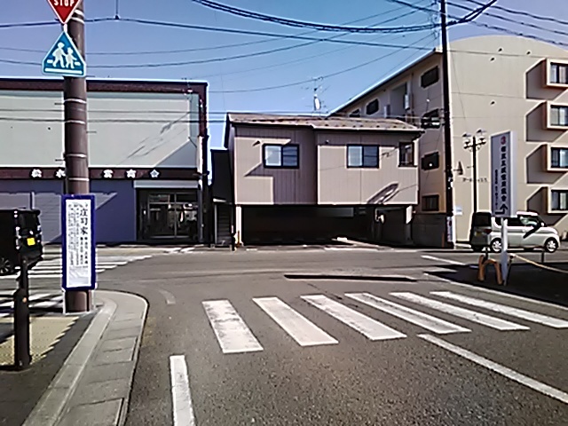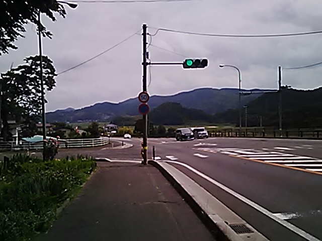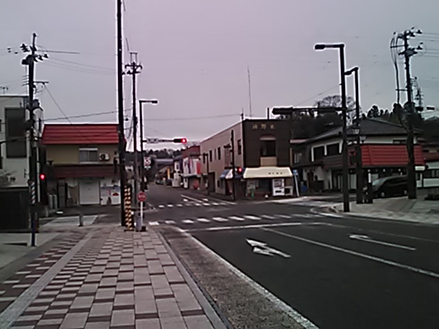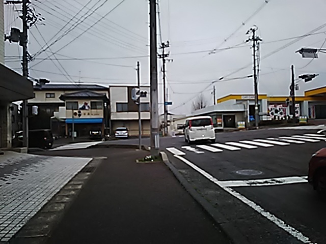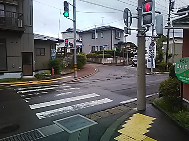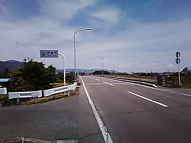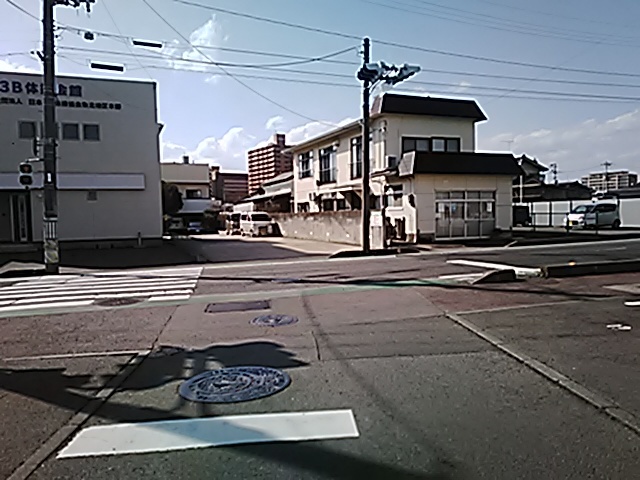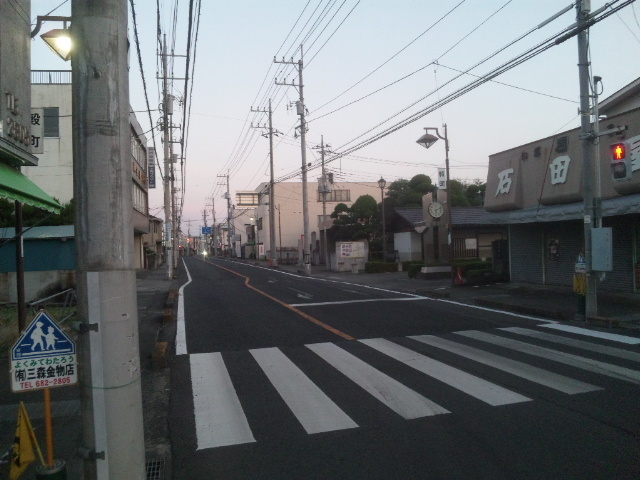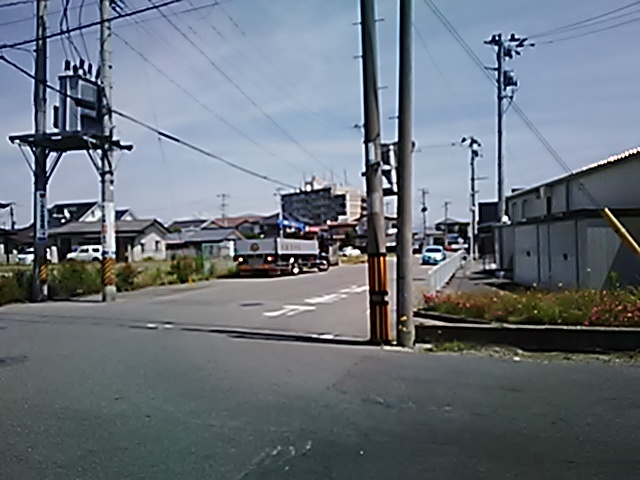 (R07/06/01 10:46:02 石鳥谷(陸中)) このあたりが石鳥谷宿中心部です。 石鳥谷では先週、クマが出たとのことで、ラジオを鳴らしながらびくびくして歩きましたが、見てのとおり、クマなんて居そうにない市街地です。 日が出てきました。 (