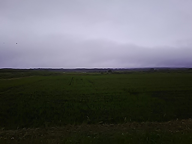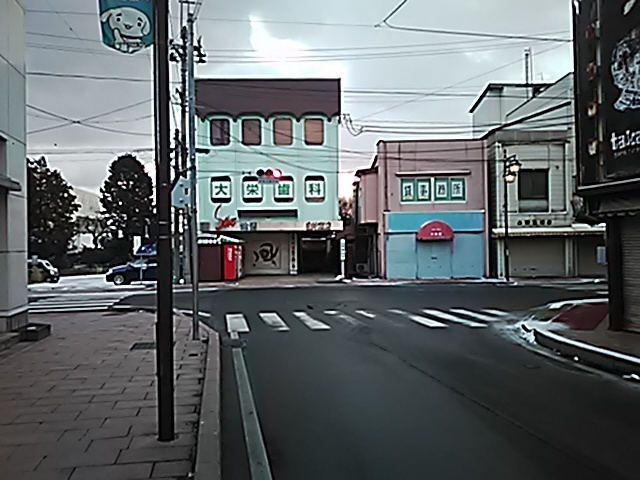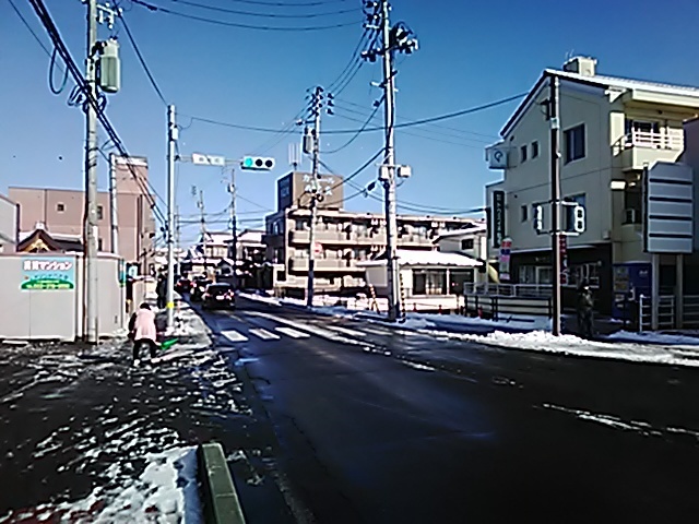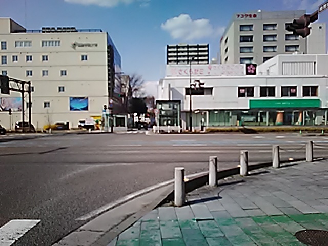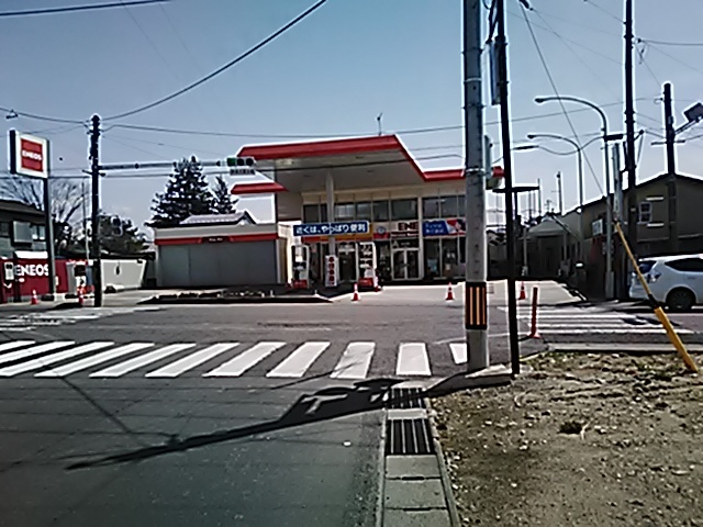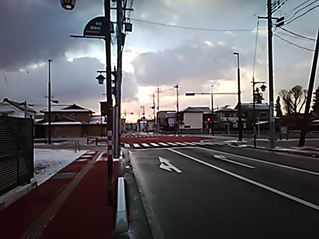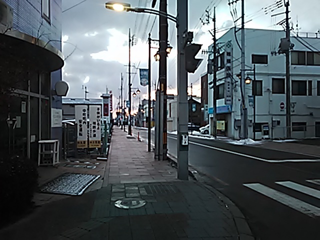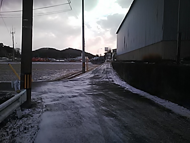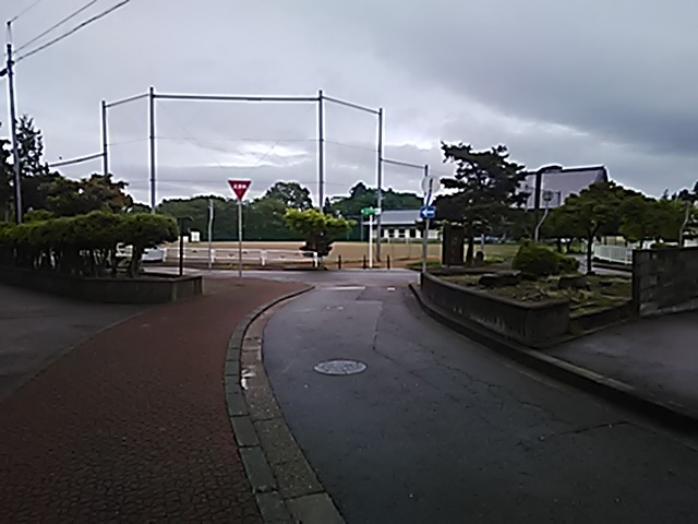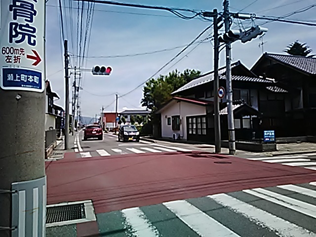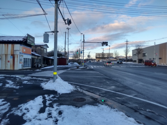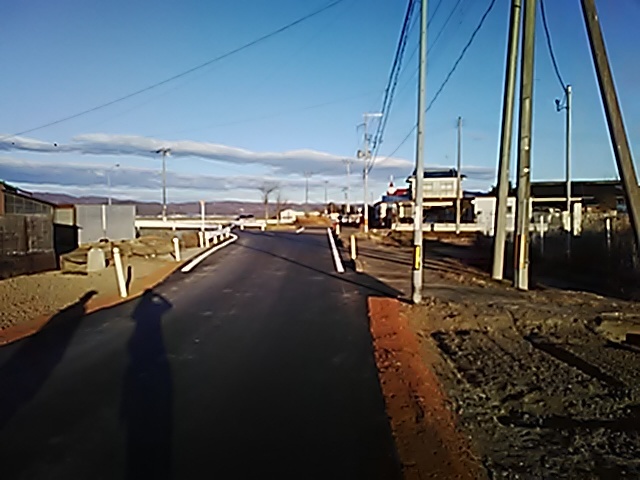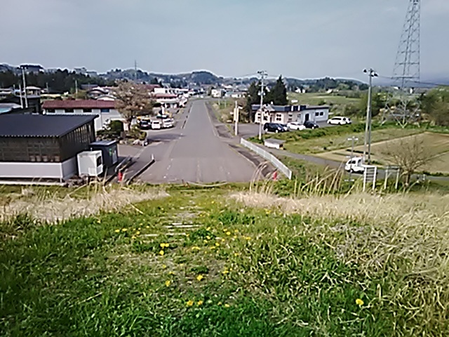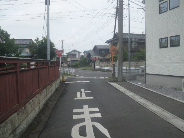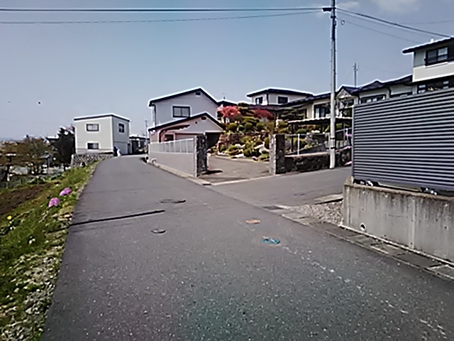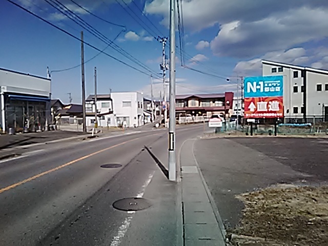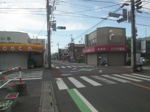 (R07/06/01 10:46:02 石鳥谷(陸中)) このあたりが石鳥谷宿中心部です。 石鳥谷では先週、クマが出たとのことで、ラジオを鳴らしながらびくびくして歩きましたが、見てのとおり、クマなんて居そうにない市街地です。 日が出てきました。 (