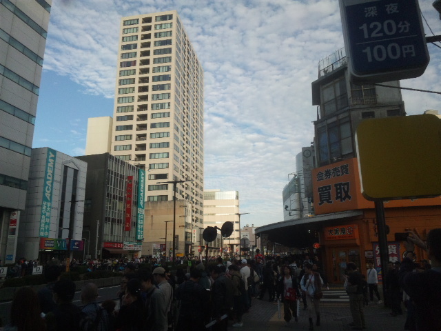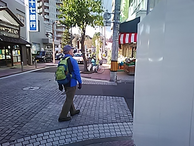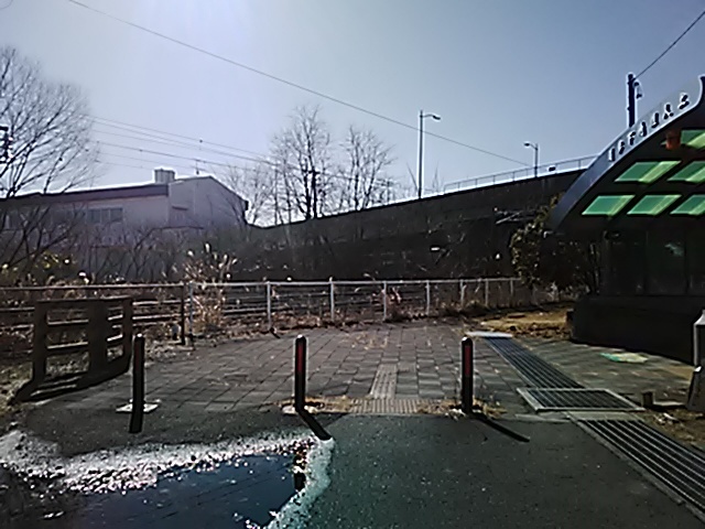 (R07/10/12 08:59:30) 地下道を通って「北山口」という出口に出て、振り返る方向に進むのが正解と判断。