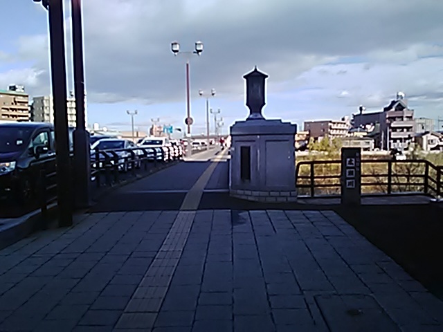 (R07/10/11 13:12:31) 明治橋で北上川を渡ります。 かつての奥州街道はもう少し下流を渡っていました。 (