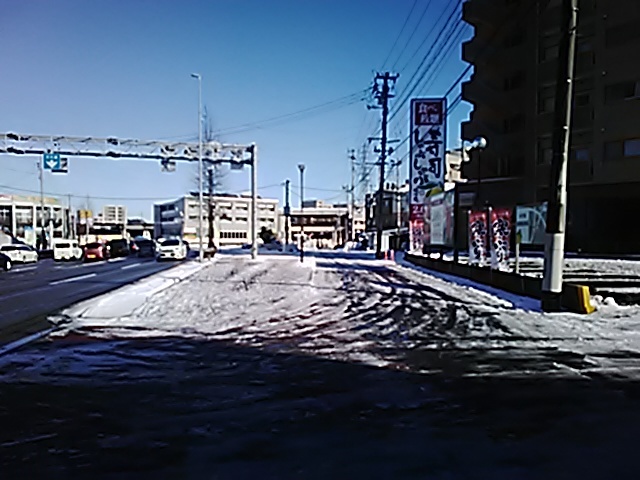 (R07/06/01 07:52:18) 左折して国道4号に入りますが…元はまっすぐだったんでしょうな。 (