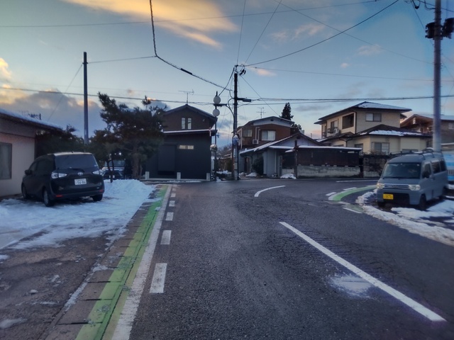 (R07/06/01 07:17:27 花巻(陸中)) そしてすぐの突き当たりを左折。 城下町によくある線形です。 (