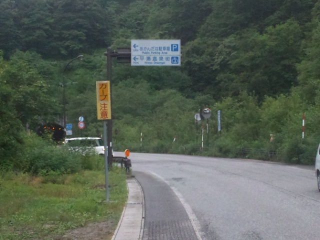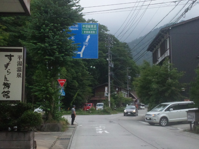 (18/08/12 16:28:49) 国道から外れます。 まもなく平湯温泉街。 (