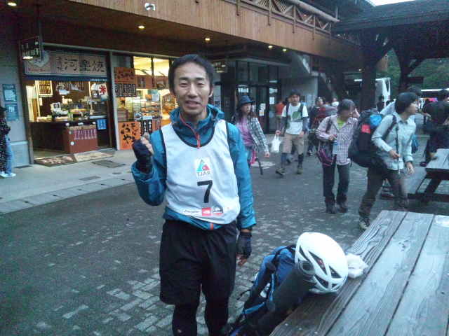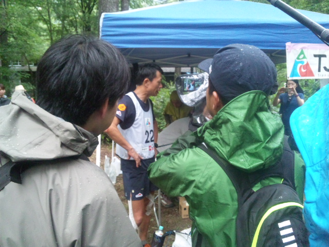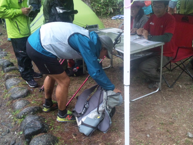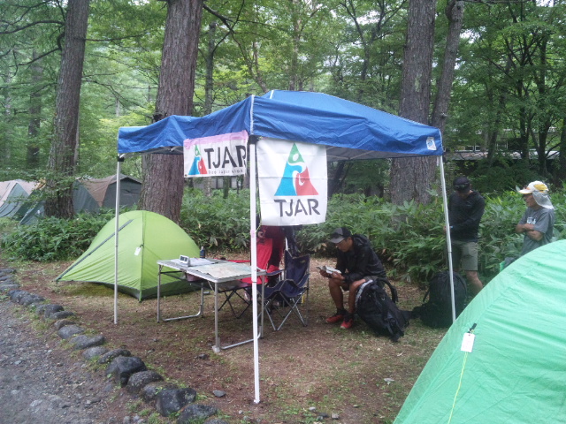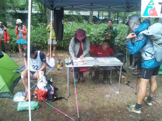 (18/08/13 08:10:22) TJAR上高地CPを確認。 トップは石田さん(静岡県)、ただしまだ槍ヶ岳山荘を通過していないとのこと。 天候があれだから遅れているのか…。 望月さんは(わざと)15kgを背負っているので遅れているとのこと。
